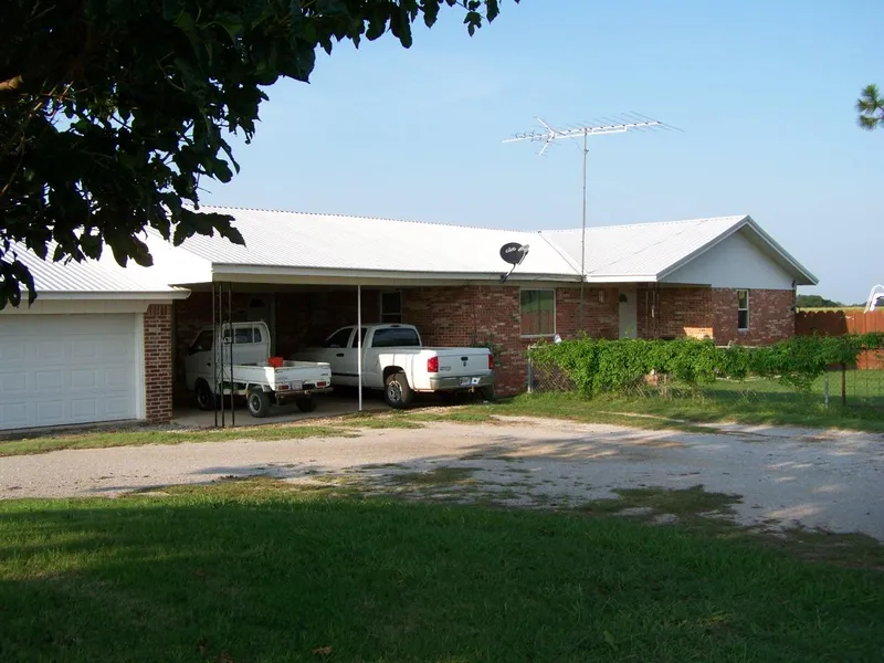 HOME- 1972 brick home with 3 bedrooms, 1.75 baths, sunroom, formal dining, lg. utility room, in-ground pool needs liner-would cost $2,200-$2,500 according to owner, pool is 40x20 and has slide. Total elec., OG&E, water is currently a shared well with white house to N. Seller has paid for a water meter with West Davis Rural Water & new buyer would need to have district install meter and run lines from meter to house or dig new well. Water supply is good here-owner sells water to the water district and will retain water rights. Double car garage, white metal roof, many of furnishings will remain with house but not lawn mowers or deep freezers or end tables in living room or exercise equipment.
