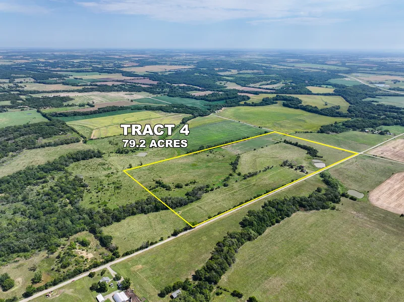 TRACT 4: 79.2 acres northwest of Cherryvale in Montgomery County, Kansas. This tract is made up primarily of pasture with a balance of tillable farm ground and a pond for livestock and wildlife. An old homestead site remains on the property along with a barn and outbuildings, offering character and potential for restoration or future improvements. The land also includes 4 oil wells (set up with solar), providing income opportunities. This tract is well-suited for building a home, running cattle, or continuing crop production. The mix of grazing, tillable acres, and recreational appeal makes this a highly versatile tract with long-term potential.