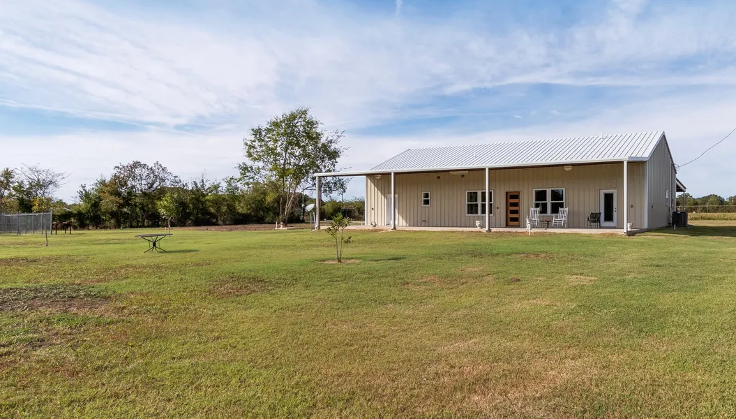 Welcome to "The little Ranch" Dream of owning your own working ranch and luxury home on nearly 80 acres. (less than 1 hour from DFW). This gorgeous barndominium was built with no expenses spared. Built in 2018 with attention to detail this 3 bedroom 2 and 1/2 bath home offers over 2000+ sq ft. Chef's dream kitchen with custom cabinets, quartz counters, professional appliances and large working island with luxurious portuguese marble on the floors. Two separate master suites with wow bathrooms and closets, one designed with ADA in mind all opening on to 15X63 cover back porch with amazing pasture view of Tall Timber and Wildlife on this secluded ranch oasis.