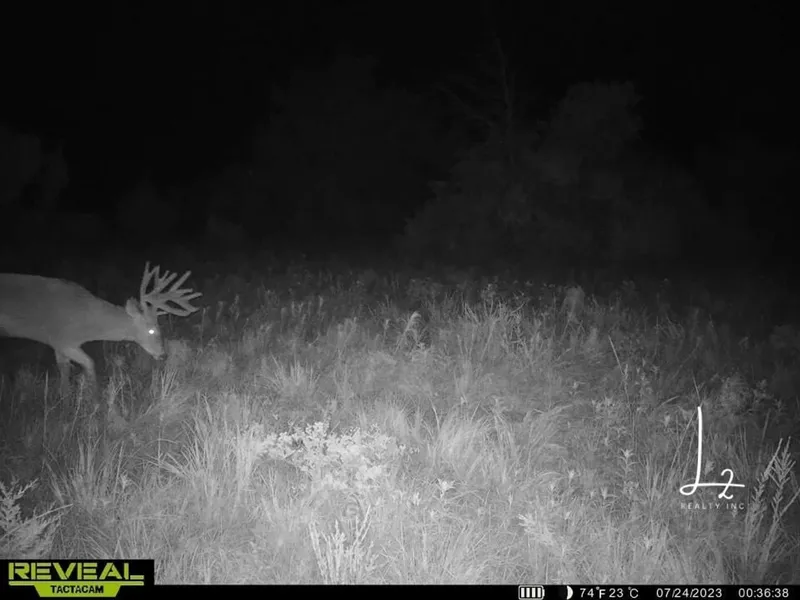 We might as will begin with the cream of the crop, the whitetail hunting. With its elevation changes, multiple cedar thickets, overgrown grasses, and food plot already cleared out, this property has everything needed to grow that whitetail of your dreams. We can start with the cover. With multiple cedar thickets and tall grass, this farm has all the cover necessary to hold an abundant number of deer. Not only does, but multiple mature bucks. I have a lot of experience with this area of Wilson County and it's known for those giant Kansas bucks that we are searching for. After having cameras on the farm for just a few days, I already seen all I needed to see. It's not only the cover, it's also the food. There is about a 2 acre area that has been used for a food plot in the past that is just waiting for you to plant those seeds. Not only that, but there are crops in 3 of 4 directions to help keep your deer herd fed year around. The coone pond on the parcel will help provide enough water to your wildlife to keep them from wandering and searching. There are multiple stands and blinds on the property that will stay when the propery sells. So when I say whitetail ready, I mean it!