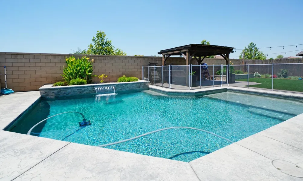 Private POOL in the backyard! This single story 4bedroom 2bathroom home has it all!Hard to find this SKYE development is single-story homes only. LVP flooring custom countertops, Custom Fridge, Culligan house water filtration system, Auto custom blinds, custom stone fireplace, upgraded white doors with matte black hardware, custom closet in master, pool fencing, patio covering, Synthetic lawn, Smart Home: includes garage light switches, ring front doorbell front door lock and thermostat all can be controlled by phone apps or Alexa. Synthetic lawn low Maintenace back yard makes perfect for entertaining. HOA is 125$ includes access to pool gym parks and monthly events at lodge. Solar is leased. This house is FLEXING!! Better then New!