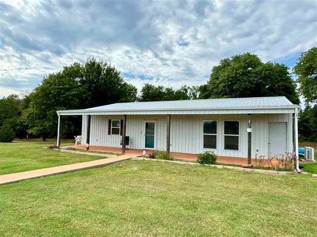 Experience the allure of Oklahoma's breathtaking skies on this stunning 9.38-acre property, where a 1,500 sq. ft. Barndominium awaits as your dream home! Enjoy the beauty of the outdoors from the expansive full-length covered front porch. Step inside to discover the charm of rustic corrugated metal walls and an open-concept living area that seamlessly blends with a spacious kitchen. The kitchen is a chef's delight, featuring stainless steel appliances, HGTV-inspired floating shelves, and a massive island perfect for gatherings. The bathroom is a rustic retreat, boasting wood and metal accents, a huge walk-in shower with corrugated metal walls, and a convenient laundry area. The master bedroom offers a huge walk-in closet with ample space for a gun safe or additional customization, while the second bedroom also features a large walk-in closet. Stay comfortable year-round with two mini-split heat/air units, ensuring energy efficiency and low utility costs. The property is equipped with a well and a standard septic system. The circle drive leads to an oversized two-car metal shop building, offering endless possibilities for your projects and storage needs. Relax on the back deck, where the outdoor living space invites you to soak in the incredible Oklahoma sunsets and watch the abundant wildlife. This one-of-a-kind property won't last long?call to schedule your showing today!