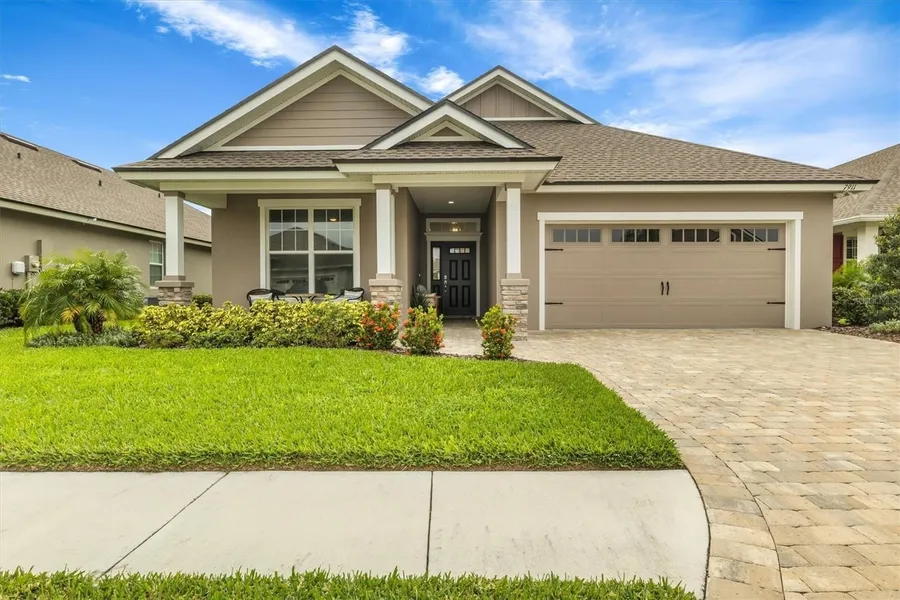 Opportunity knocks in Lake James, one of Central Florida’s most desirable 55 plus communities. Built entirely by Ernie White Construction, Lake James is a serene retreat for those lucky enough to call it home! This is the last new home to be listed in the community. Sure to please the most discriminating buyer, this Gibson IV spec home is waiting for you. Upon arriving you will appreciate the attention to detail, quality of construction, and upgraded materials throughout the home. With three bedrooms and two bathrooms, boasting 1,886 square feet; this open concept, split plan home is sure to capture your interest. The living area of the home is bright, open, and includes the great room, dining room, and kitchen. The kitchen is adorned with Wellborn wood cabinets, an oversized island, and Cambria Quartz solid surface countertops. Keep looking and you will notice the large kitchen pantry, under cabinet lighting, stainless steel appliances, and crown molding throughout the home. Next to the kitchen is the dining area, which leads to the triple glass doors opening the home to the large rear paver patio. Upon making your way to the primary bedroom you will notice the plush carpet in the bedroom and closet. The bedroom easily accommodates a king bedroom set with room to spare. The primary bath features a walk-in shower, dual vanity countertop, dual linen closets, a water closet, and a huge walk-in-closet. The second bedroom, located at the front of the home also features carpet flooring and a walk-in closet. The third bedroom, commonly used as an office features tile flooring. You will appreciate the details you cannot easily see, like the Carrier 15 Seer air conditioner with a 10 YEAR parts and labor warranty, R-38 blown attic insulation (living areas), foam injected insulation in exterior block walls (living areas), Lifetime Dimensional Shingles, and the insulated Low E windows. The appeal of Lake James is obvious. The manicured common areas, the pristine homes, friendly neighbors, and the fact that the HOA provides all yard care, WIFI, and Cable! You will have plenty of time to enjoy the community pool, gym, clubhouse, Bocci ball court, and walking trails! This opportunity will not last long, call today to schedule a private showing!