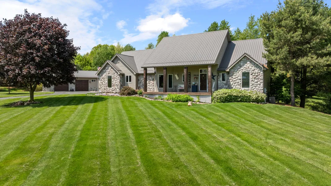Nestled on a secluded private drive, discover the unparalleled beauty of 7918 Dan Patch Dr. Situated on a breathtaking 2.5-acre lot within the highly sought-after Northwest School District, this property offers a serene escape unlike any other. As you make your way up the recently sealed long driveway, a charming front porch welcomes you, offering picturesque views of your expansive yard and the tranquil pasture beyond. A substantial two-garage door barn, complete with a convenient overhang, provides ample space for all your outdoor equipment and hobbies. The newer metal roof adds both durability and a cohesive aesthetic to the outbuilding. Step inside to find a thoughtfully designed interior. The master suite, located on one side of the home for ultimate privacy, boasts a private deck walkout, inviting you to enjoy the peaceful surroundings. Vaulted ceilings soar through the open-concept living room, creating a bright and airy atmosphere. On the opposite side, you'll find the kids' rooms, conveniently connected by a well-appointed Jack and Jill bathroom. The updated kitchen, featuring newer appliances, is a delight for any home chef. Imagine cozy evenings gathered around the stone fireplace, with two massive bay windows framing the nature-filled beauty of your backyard. For added convenience, a remodeled upstairs laundry room simplifies daily chores. Fresh paint throughout the home creates a clean and inviting ambiance. The fully finished basement, with its tall ceilings, offers even more living space, highlighted by a fun sports bar - perfect for entertaining friends and family. This home is also practically equipped with generator readiness and full power to the barn. Meticulously updated and lovingly cared for, 7918 Dan Patch Dr. feels like it belongs on the pages of a home lifestyle magazine. This is an exceptional opportunity for the discerning buyer seeking privacy, space, and refined living. Don't miss your chance - schedule your appointment today to experience this extraordinary home firsthand!