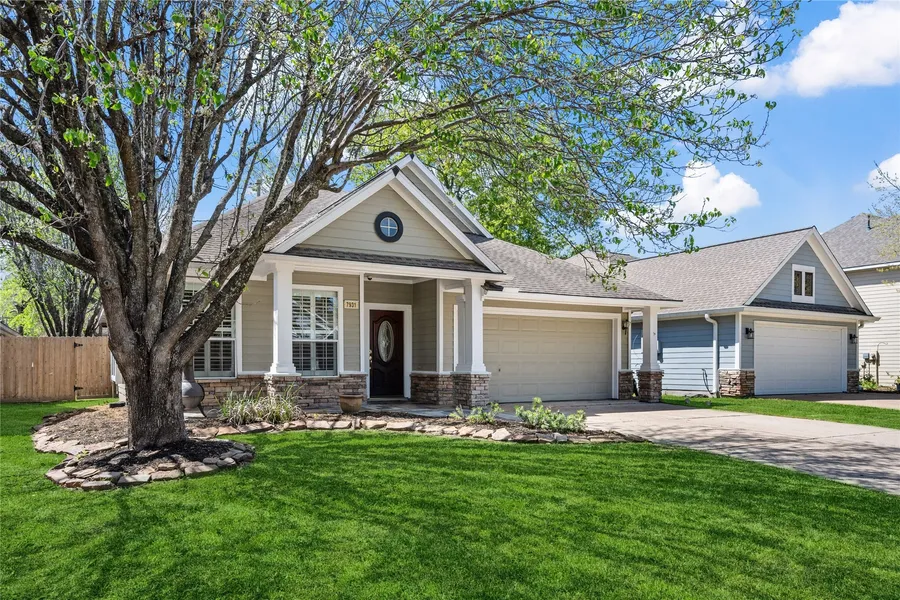 Located in a gated pocket neighborhood of Woodwinds Lakes, this 1 story David Weekley home offers the comforts of community living while having close access to 290 & Beltway 8. Exterior combines brick & cement board with pillars and rock lined landscape beds. Plantation Shutters, Double Pane Windows, Gas Fireplace, In House Utility Room. Fresh neutral paint in: primary bed, secondary bath, & utility room. Kitchen features: island, breakfast bar seating, glass cabinet doors, stainless steel appliances (new dishwasher installed 2025), coffee station area, and breakfast nook. Primary bed with en suite bath hosts: separate soaking tub & shower, dual sinks, and walk-in closet. Extended back patio. Community Amenities include: Pool - Tennis Courts - Playgrounds - Fitness Park - Dog Park – Rentable open aired roofed pavilion with ceiling fans, benches, grill, and restrooms - three lakes that feature: trails, bench areas, stocked catch & release fishing, fountains, and waterfalls.