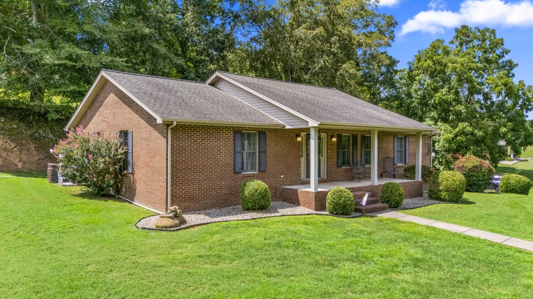 Built in 2005 and nestled on a full acre, this 3-bedroom, 2.5-bath brick home offers both comfort and functionality inside and out. With almost 2,000 sq ft on the main level, plus a full basement, you'll have space for everything. The basement features poured concrete walls, a walkout to a covered patio, and has never had leaks. Upstairs, the primary suite flows into a spacious master bath and walk-in closet. Two additional bedrooms share a convenient Jack & Jill bath. The living room boasts vaulted ceilings, while the kitchen/dining area features custom maple cabinets with a cherry finish. A large utility room with closet is located just off the kitchen. Enjoy outdoor living with a newly built back porch featuring an open gable and pine shiplap ceilings! The area is perfect for entertaining and summer nights! The in-ground pool (18x36) is a summer dream, complete with diving board, slide, black metal fencing, and a privacy fence section. Surrounding concrete decking leads to the pool house, which offers a covered porch, bathroom, and storage area. With its classic brown brick exterior, modern updates, and resort-style backyard.