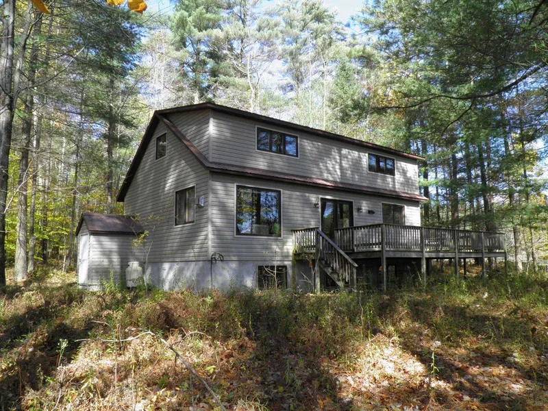 NYS Adirondack Park waterfront property with house on Upper Chase Lake for sale. This almost move-in-ready, three-bedroom, one bath, 1-1/2 story structure could be used as a full-time home or seasonal cottage. It is situated on 1.6 wooded acres, with approximately 330' of frontage, on the northern shore of Upper Chase Lake, just twelve miles from Lowville, the nearest village. The house is nestled between tall pines and hardwood trees common to the forests which surround the Lake. Originally built in 1992, it was designed as a retirement home with modern amenities and low maintenance in mind. Exterior building and site characteristics include; a concrete block, full size basement with interior and exterior entrances, fully insulated wood framing with vinyl siding, a painted steel roof, and 200 amp. electric service via one private utility pole. A 14' deep, driven point (with pump and pressure tank in the basement) was tested to deliver 3-1/2 gallons/minute. The septic tank and leach field are located on the northwestern side of the house. All work was done according to local building codes at the time. A 10' x 36' open, lakeside deck, a great location for a barbecue grill and picnic table, was added in 2005.