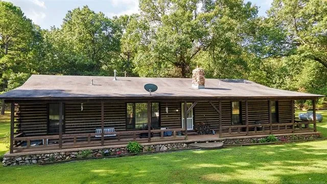 Escape to Seclusion: Your 5-Acre Log Home Retreat Awaits! Discover the enchanting charms of rustic living with this extraordinary 5-bedroom, 2.5-bathroom log home nestled within a sprawling 5-acre estate. Step onto the expansive front porch and envisage sipping your morning coffee amidst the tranquil sounds of nature. The rear porch presents a serene oasis ideal for memorable family gatherings or simply unwinding after a long day, with the added peace of mind provided by a built-in storm shelter. Inside, the inviting floor plan brims with warmth from the rich wooden interiors. Each room tells a story, with large windows framing the lush, natural surroundings. The kitchen, a confluence of functionality and charm, will inspire your culinary explorations. Embrace the possibilities of outdoor living; whether it's a future garden, playground, or simply the joy of open space, this property provides the perfect canvas for your rural dreams. Make this charming log home your personal retreat and indulge in the peace and quiet you've been yearning for. Still close to highway access and local amenities. It's more than a home; it's where life's simplest pleasures come to life.