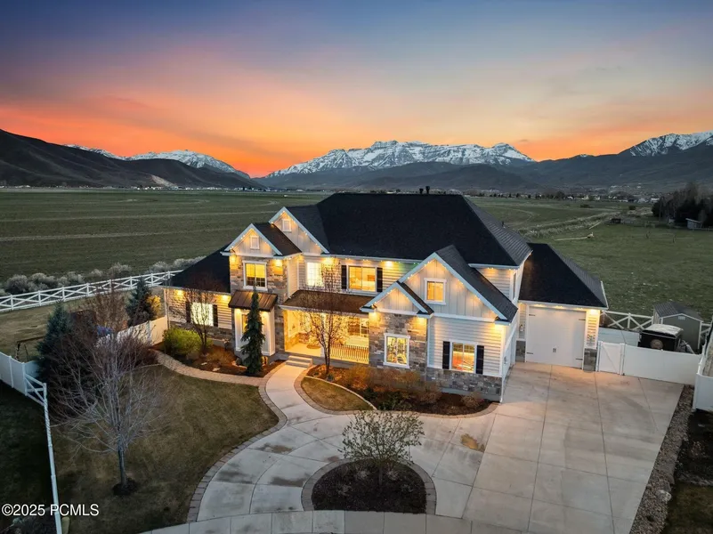 This exquisite estate features 6 spacious bedrooms and 6 bathrooms, and a great room boasting 20-foot ceilings, creating a bright and airy atmosphere. As you step inside, you're greeted by a striking 2-story chandelier made of thousands of shimmering crystals, illuminating the grand entryway. Enjoy unobstructed views of iconic Mount Timpanogos, adding a breathtaking backdrop to daily life. A dedicated office near the front entrance offers custom cabinetry and a built-in desk, ideal for remote work. The heart of this home is the custom kitchen-an entertainer's paradise-complete with double ovens, two dishwashers, a large pantry, and a butler's kitchen for seamless entertaining. The great room features a window overlooking your very own indoor racquetball court, designed for regulation play as well as basketball, pickleball, wallyball, and badminton. Retreat to the spacious primary bedroom, featuring its own library, walk-in closet, and an elegant marble bathroom. Downstairs, discover a second living room adjacent to a dedicated movie theater with stadium seating, perfect for cinematic experiences. A full apartment boasts its own room, bathroom, kitchen, laundry, and walkout access via French doors. The property includes a generous 3-car garage with a tall heated bay (12' high and 26' long). Next to the garage is a 45 ft long RV pad for your adventures. Step outside to a breathtaking outdoor oasis with professionally designed landscaping surrounding a large grassy area, playground, zip-line, and a stunning 16' by 32' covered swimming pool featuring a captivating waterfall and jumping rocks. Enjoy evenings in the gazebo, relax in the 7-person hot tub on one of the decks, or catch a movie at the outdoor theater with surround sound. The backyard offers unparalleled privacy, allowing for peaceful relaxation. Permanent tiki torches enhance the ambiance, making this outdoor space perfect for gatherings or serene nights under the stars.