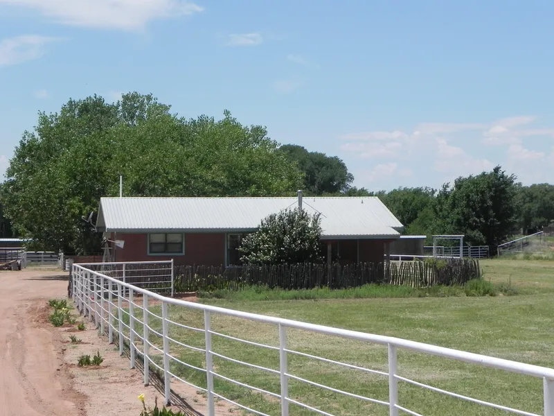 Come see this neatly kept 8 acre horse farm in the Fort Sumner Valley. The main house is a 2 bed 2 bath with an office. Beautiful oak cabinets highlight the kitchen. Light oak wood flooring cover the kitchen and living room. Central air and heat throughout the house. There is a full porch off the west side of the house that leads to the 2 car carport and a small patio area to entertain guests.