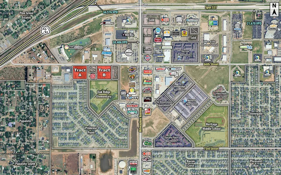 8 acres of premier development land located along the rapidly expanding Milwaukee corridor in the heart of southwest Lubbock. This prime site is just 1/2 mile south of Canyon West, a sprawling 800,000+ square foot mixed-use development featuring anchor stores such as Super Target and Burlington Coat Factory. Additionally, it is approximately one mile from the new Super Walmart. The Milwaukee corridor serves as the main thoroughfare between these two high-traffic retail hubs and stands as the newest major north-south route in Lubbock, connecting U. S. Highway 84 (Clovis Hwy) to FM 1585. The tracts available in this offering are perfectly suited for retail, office, and hotel development.