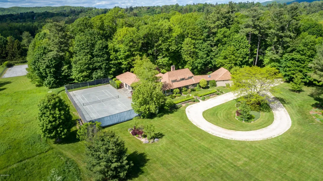 Location, Location, Location! Enjoy fresh updates in this first-time offered downtown Lenox Jem in the privacy of Bishop Estate! Contemporary design with open floor plan, indoor heated pool, sauna and jacuzzi spa, and outdoor tennis court. Views from nearly every room of the private landscaped acreage will make it hard to believe you're in walking distance to Shakespeare and Co, Canyon Ranch, dozens of shops and restaurants that downtown Lenox has to offer! The main floor is designed for entertaining with a bright eat-in kitchen, spacious livingroom with fireplace and large sunny deck. First floor master with newly renovated en suite. A seperate dining room and den complete the main floor. The Second floor has 2 spacious bedrooms and large full bathroom. The newly renovated lower level includes 1 bedroom, new sleek bathroom, sauna and jacuzzi room and access to the cedar building housing the heated indoor pool with access to yard and patios.