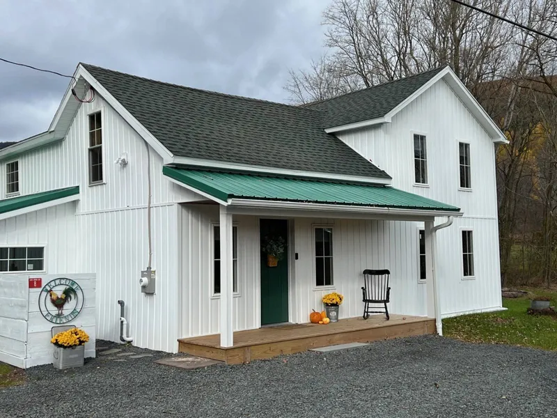 Welcome home to this beautifully fully renovated 3-bedroom, 2.5-bath farmhouse tucked on .80 acres of pastoral serenity in Prattsville, NY. Thoughtfully restored with a blend of historic charm and modern amenities, this residence offers the perfect balance of country living and outdoor adventure: AirBNB guest reviews rave about the charm, comfort and fantastic vibes! Step inside to discover a gourmet kitchen with shaker-style cabinetry, stainless steel appliances, butcher-block counters, and a center island ideal for casual meals or entertaining; a light-filled, open living/dining area; a primary suite with an ensuite full bath, washer/dryer unit and a generous walk-in closet and a convenient half-bath on the main floor. With mountain views from nearly every window, upstairs you'll find a generous, flexible loft area with vaulted ceilings, two additional spacious bedrooms, and a full bath. Floors have been upgraded with durable LVP vinyl planking for easy care. All bathrooms have been completely updated with modern vanities, tile, and premium fixtures. Outside, the property features a spacious yard with room for gardening, play, or outdoor gatherings; Creek-side seating and an outdoor fire pit; Mature trees, wooded paths, and a peaceful country setting, and a classic front porch and an enclosed, screened porch with stunning mountain views for extended indoor/outdoor living. Location is key - the property is conveniently adjacent to thousands of acres of state land including hiking and snowmobile trails for year-round outdoor pursuits right out your front door. You're just a stone's throw from Bearpen Mountain Sports, a local winter recreation destination offering cross-country skiing, snowshoeing, tubing, ice skating, fat-bike trails, and more. And no fewer than four epic downhill skiing resorts are within 20-30 minute's drive, including Hunter Mountain Resort and the Windham Mountain Club. For other pursuits, the Great Northern Catskills are a prime destination for seasonal festivals, scenic drives and charming small towns with unique attractions. Few renovations are undertaken with this attention to detail, quality and level of craftsmanship. This home is ideal for those seeking a turn-key property in a quiet rural setting, with outdoor recreation and local charm at your doorstep. Don't miss your chance to own a slice of country living in a prime gateway to Catskills adventures.