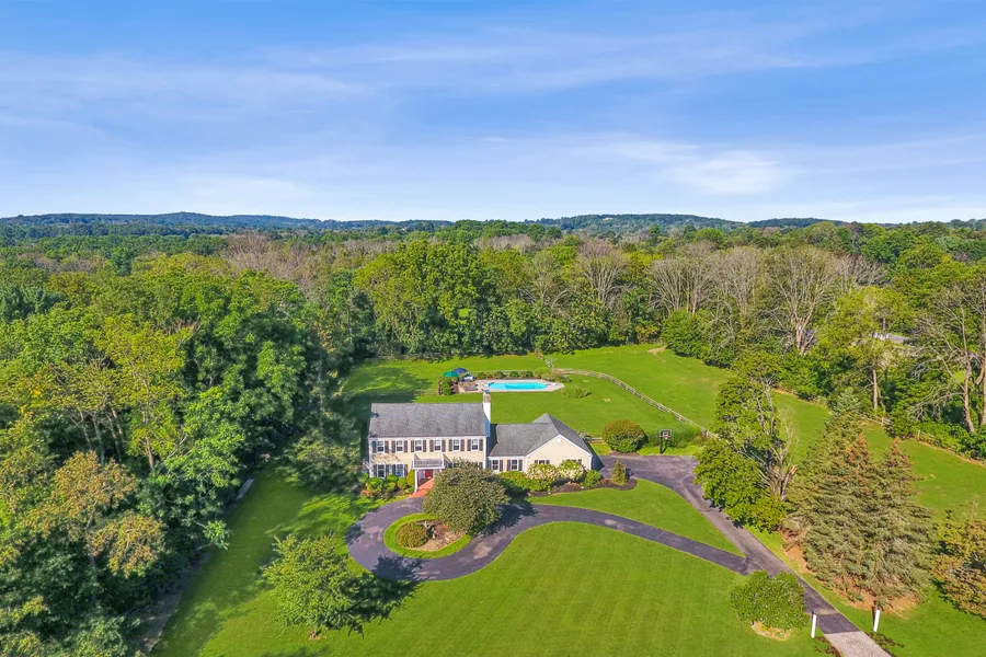 This updated,classically-styled colonial is perfect as a full-time residence or weekend hideaway with its secluded location nestled near the end of a cul-de-sac in a neighborhood of other hobby farms. The home's traditional and open layout is enhanced by plentiful and oversized windows overlooking views of the property as well as recently refinished hardwood floors, and renovations in 2023 to the kitchen and all bathrooms. The full, finished basement features a recreation room and space for a home office, gym, or dance studio. The large paver patio, an inground pool, and an open, level backyard define spaces for outdoor dining, entertaining, and recreation. The farm's 3-cedar-sided stall barn is thoughtfully sited with a wooded buffer separating it from the residence with easy access from the road and is suitable for horses or other livestock or as a workshop/studio. The barn's lacquered pine interior paneling, heated tack room, hot and cold water, cold-start lights, hayloft, and 10' central grooming aisle with pavers and central drain are complemented by open, level, pastures with post-and-board fencing. Nearby access to the 200 acres of Christie Hoffman Farm Park provides opportunities for hiking, birdwatching, and running in the park as well as access to the Tewksbury Trail System with miles of well-maintained trails to be explored on horseback. The property is well-located within the community near schools, historic village centers, and recreation and shopping areas.