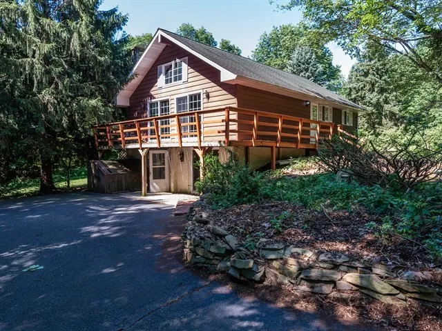 Three bedroom, 1 1/2 bath A-Frame home on 3+ acres surrounded by nature! Features include a semi-wrap around deck, a spacious great room with stone fireplace, open kitchen / open floor plan concept, two bedrooms are located on main floor, one bedroom on 2nd floor. The lower level/basement is finished with a family room with stone bar, half bath, and laundry area. Detached 2-car garage.