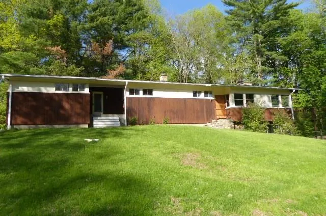 Sprawling and spacious 2400 sq ft ranch style home has 8 rooms, 4-5 bedrooms, 2 full baths and full walk out basement. Great room, with cathedral ceilings and beautiful floor to ceiling stone fireplace, flows into kitchen and dining room. Master bedroom has its own full bath and cedar closet. Hardwood floors throughout. 2 car garage under plus full walk out basement. Heated with oil warm air heat. Sits on .83 acre slightly sloping lot. Wonderful buy