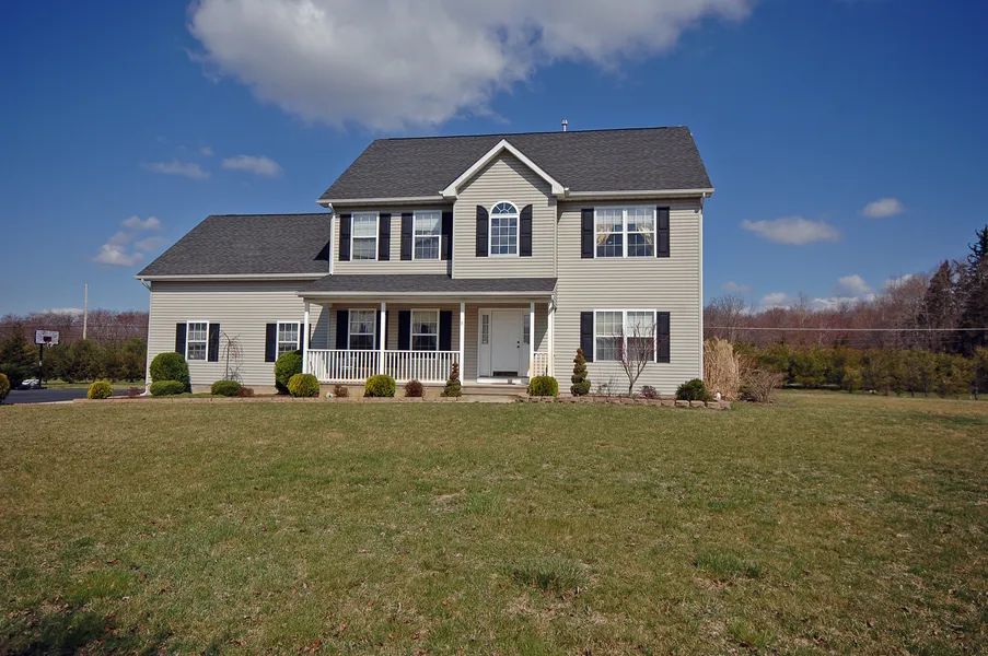 Colonial with front porch, 4 generous size Bdrms, 2.5 Bths, 2 Car SIDE ENTRY garage, w/a FULL BASEMENT, & LARGE LOT. This home is in a beautiful development. 2 Story foyer w/hardwood floors. Din rm off to the side leads into the kit w/an abundance of cabinets & counterspace. Center island for more storage! Brkfst nook w/sliders to a deck & a great backyard. HALF wall in kitchen overlooks a sunken Family room w/a fireplace.One step up off the family room is a LOVELY Living room!MSTR SUITE w/sitting rm on suite full bath & walk in closet!