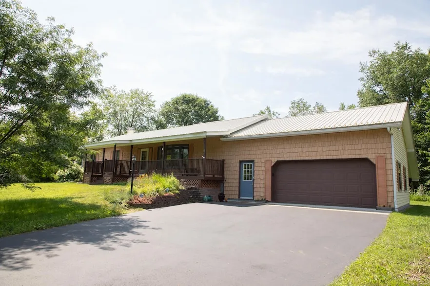 Well-maintained, expansive ranch nestled on a picturesque 4.5-acre lot. Located on a peaceful cul-de-sac, this home offers the perfect blend of tranquility and convenience, being just a short distance from town amenities and providing an easy commute to I87. The property features a long list of recent updates, including a newly sealed driveway (2023) and a septic system that was pumped in June 2024. Additionally, the furnace has been recently serviced to ensure comfort and reliability throughout the year. The house is protected by an 8-year-old metal roof and efficient gutters. The main living area and primary bedroom have been upgraded with modern mini-splits, offering personalized climate control. Inside, you'll find an open floor plan with tons of natural light! Elegant Red Oak floors in the living room and primary bedroom, adding a touch of sophistication and warmth. The primary suite includes a spacious 9 x 10 walk-in closet and a private en suite bathroom. For added convenience, the home is equipped with a central vacuum system. The large, dry basement provides a versatile workshop space and a bonus room, perfect for crafting or as a cozy den. There's also plenty of additional space for storage and the potential to finish to suit your needs. Outdoor enthusiasts will appreciate the beautifully landscaped gardens, expansive front and back yards, and wooded areas that border the Little AuSable River, attracting a variety of wildlife. Enjoy serene mornings and evenings on the large, covered front porch, or soak up the sun in the stunning sunroom overlooking the backyard. This home is a true gem, offering both peaceful country living and modern conveniences. Don't miss the opportunity to make it your own!