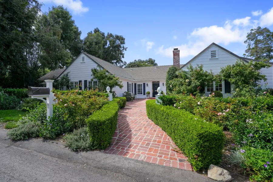 Williamsburg colonial nestled in an English garden in the 24-hour guard gated City of Rolling Hills. First time on the market in 43 years, the current house was designed for gracious living and entertainment. In addition to the 4 bedrooms and five baths the house features 4 wood burning fireplaces two of which are antique marble; walnut floors; plaster moldings; French doors with imported European hardware; a primary suite with 2 separate baths; a formal dining room; an office; and a Summerhouse imported from England now in the garden. The garden was designed to provide a peaceful oasis with its towering trees, hundreds of flowering plants, expansive lawn, and bubbling fountain. A wonderful place to meditate or just relax with a book. Architectural plans for a 950 sq. ft. addition designed by Louis Tomaro are available, and were previously approved by the Rolling Hills Community Association.