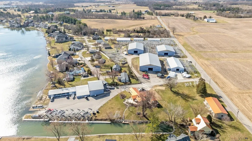 Own a well-established and thriving marina on the shores of beautiful Clear Lake! This exceptional property spans 8 acres with 170 feet of prime lake frontage as well as an additional 257 feet of channel frontage, offering everything needed for a seamless transition to new ownership. The marina features gas tanks for convenient on-water fueling, six large storage buildings for winter boat storage, ample lawn for off season lift storage, a 3,896 sq ft building with a beautiful showroom, a fully equipped shop, and office spaces. Storage building sizes: 100x84, 126x78, 120x50, 120x70, 90x150, and 61x121 with racking in 2 of the buildings to accommodate boats stacked 3 high. This is a rare opportunity to step into a successful business in a high-demand waterfront location. Don't miss out!