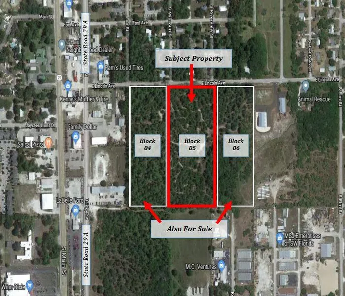 LARGE ACREAGE FOR HEAVY INDUSTRIAL IS HARD TO FIND! Find it here in the City of LaBelle! Adjoining other industrial tracts and yet off the beaten path for no hassle use. Located just east of State Road 29, in close proximity to 4-laned State Road 80, and near the LaBelle Airport on Cowboy Way (SR 80A), only one street south on E. Lincoln Ave. This 8.24 acres offers 420+/- feet of street frontage and appears high and dry with only the east boundary having a small wetland area. Front 1/3 of property is zoned for Light Industrial on the E. Lincoln frontage with the back 2/3rds zoned for Heavy Industrial use! Front half of property in Zone X requiring no flood insurance; back half in Zone AH which does require flood insurance. The City of LaBelle offers city water lines and also city sewer, depending on line availability (see City of LaBelle Supervisor of Utilities). Priced at only $.98 per square foot, this could be the bargain you have been looking for! Locate your business or split into two sites and build rental buildings! CHIP AWAY AT INFLATION! INVEST IN YOUR FUTURE TODAY!