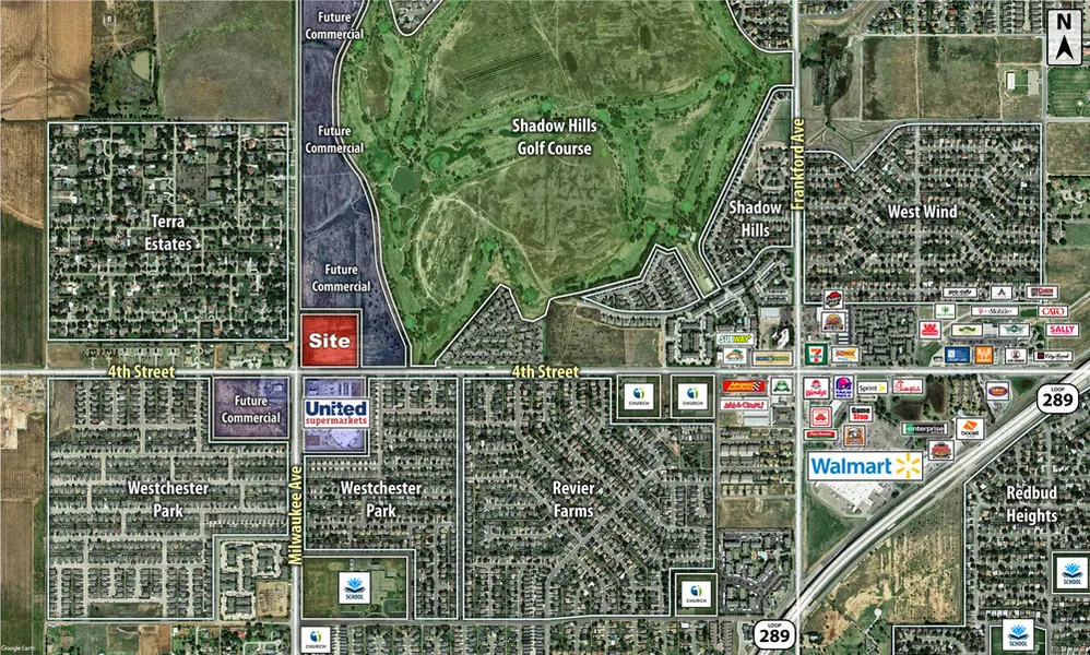 A large tract of land in the developing of northwest Lubbock with frontage on both major thoroughfares, 4th Street and Milwaukee Avenue. This property can also be bought in sub-tracts from 1-1.5 acres. Local business in the area include a Super-Walmart, Walgreens, CVS, Ford, Toyota, Kia, United Supermarkets, Applebee’s, McDonald’s, Covenant School of nursing and many more. Property is not in the floodplain.