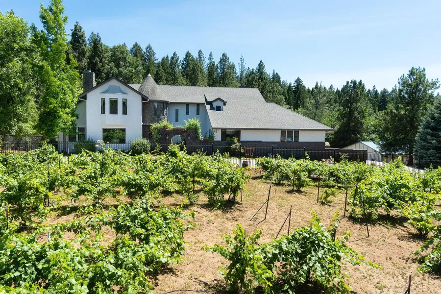 On to the land! 8 plus areas are fenced and crossed fenced. Check out the barn, solid surface siding and paneling makes maintenance a breeze, plus storage for tack, hay and tractor. Its an ideal barn for country life. Separately fenced is a private vineyard, producing enough grapes to create your own wine, in the cellar. Raised planter beds allow you to grow and enjoy your own fresh vegetables and fruit from the orchard. After the day of country life, sit and unwind by the gorgeous custom water feature, listen to the waterfall flowing in the large stocked Koi pond, or enjoy a fire in the builtin fire pit.