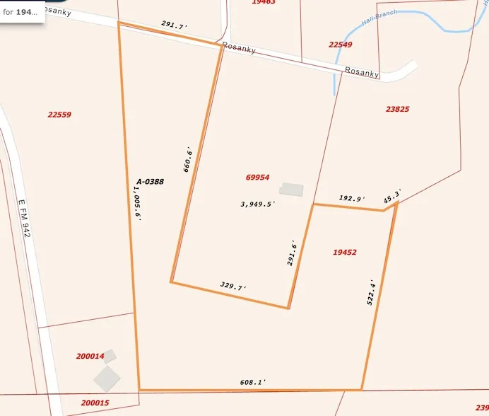 Research Parcel InformationProceed north on Hwy 59 north of Livingston. Turn right onto FM 942. Turn left onto Galloway Road North. Immediately turn right onto Rosanky. The beginning of the property is marked with orange tape and a sign.
