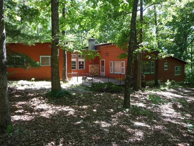 Reminiscent of the Frank Lloyd Wright Prairie Style Home, you'll love the architectural lines of this 3 Bedroom, 1 Bath Home on 8.7 M/L Acres - Located 6 miles from town, on blacktop - Remodeled Kitchen with Hickory Cabinets and all appliances - Two living areas - Wood Burning Fireplace - Outdoor Canning Kitchen complete with Cellar - Greenhouse - Gated Courtyard - Several Fruit Trees and Blackberry bushes - Multiple Storage buildings - Abundant Wildlife - Close proximity to Spring Fed Rivers and National Forest! Ideal property to get off the grid!
