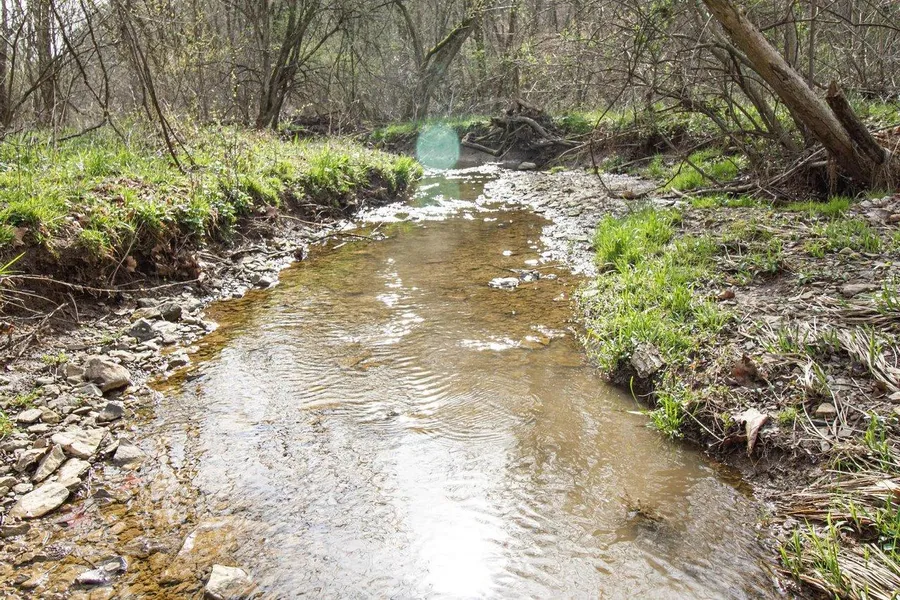 Nice walnut trees line the banks of the creek
