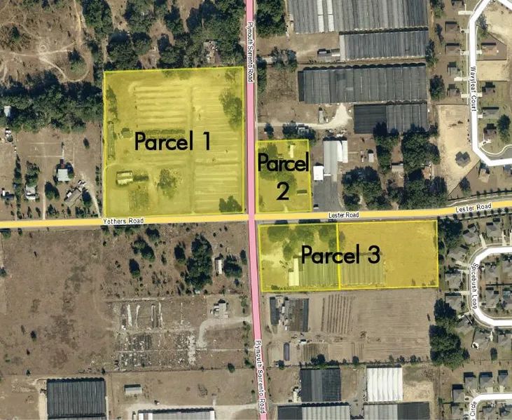 NW corner of Plymouth Sorrento Rd (CR 437) and Yothers Rd (Lester Rd). The parcel is located at the nearest commercial intersection to the new SR429/SR414 beltway exit ramp. City of Apopka zoning C-1-Retail Commercial district.