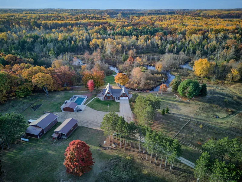 Welcome to the Pine River Estate in "Up North" Central Michigan. This beautiful river is known for brook and brown trout fishing. The private secluded setting offers spectacular views as the river oxbows through the property along the stone bank at the base of the bluff atop which sits the spacious lodge. This is truly a "Woods-Water-Wildlife Paradise"where the owners are true Stewards of Living "Life on the Land".