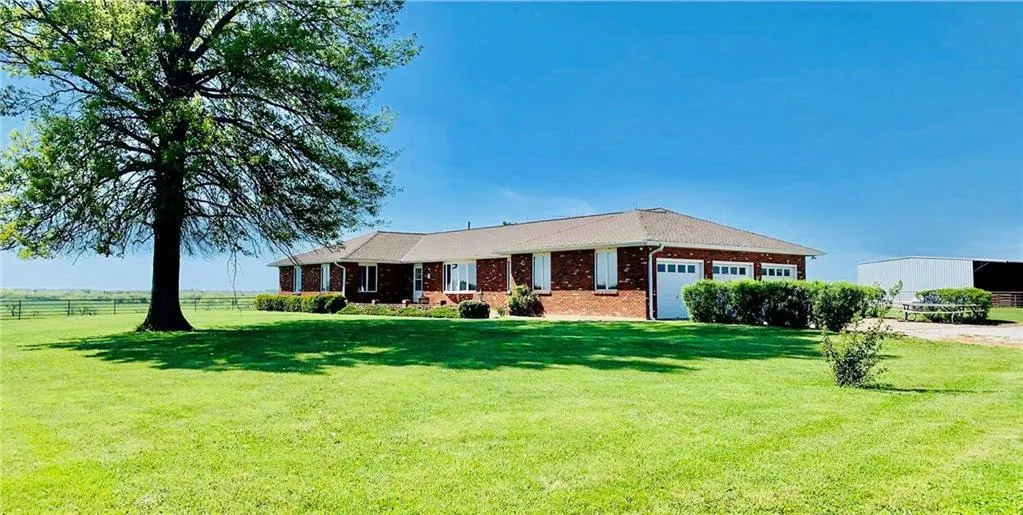 One owner custom Ranch home and Horse/cattle facility on 80 groomed acres. Lighted horse arena, 15 stall barn, equipment shop, 2 heated, concrete watering stations, SPRING FED Property. No water bills! Rural water access. Back up Generator. 3900' of home. 10" concrete basement walls. Walkout. 3 car garage. NEW CARPET. NEW GRANITE. New Flooring. All Season CUSTOM Sun Room. Whole house intercom. Basement wet bar/kitchen. Game room, 2 family rooms. 4 bedrooms, office, 3.5 baths. Walk In Tub. NEW ROOF and guttering. 2 fireplaces, quality pipe fencing. Hwy frontage, NO DUST! 20 acres are used for really nice hay crops. Cross fencing. This home was built for entertaining, family and fun. So much more to tell and show.