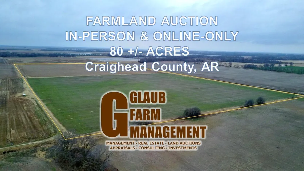 This farm will be auctioned the same day with another 77+/- Acres in Craighead County near Bay. Find details on our website.