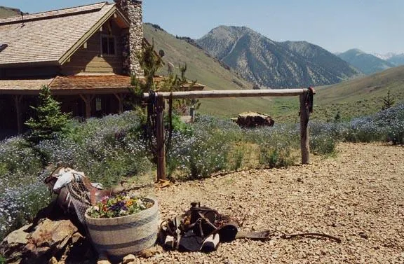 Elevated house site (7200 feet) with 360 degree mountain views through floor to ceiling all wood French doors and windows. You own the view. Wide covered porch with redwood decking all around to protect against sun and snow. Solid rock foundation ~ Vaulted, high ceilings, heavy oversize beams and logs throughout, built-in wood cabinets and bookcases ~ River rock floor to ceiling Rumford fireplace, imported random slate floor with radiant heat. Rock work by Alpine Masonry, Ketchum, Idaho. Custom textured cement kitchen and bath counters by Cliff Hangers, Hailey, Idaho. ! Underground power, electricity backed by and automatic propane generator which can run the heat, light and all appliances for long periods if necessary; satellite TV, phone and internet systems. ~ Appliances: Viking gas range, built in Sub-zero refrigerator, Fisher and Pakel washer and dryer, Bosh dish washer, built in garbage compactor. ~ Size: 1500 sq.ft. not including decks, open plan on main floor with large kitchen, dining and living areas. Master bedroom on upper floor features high ceilings, skylights, antique hardwood floors, French doors opening onto private deck. Full bath upstairs includes oversize tub, tumbled marble counters and shower with a mountain view; half on main floor off kitchen. ~ Complete plans for 800 sq. ft., 2 bedroom guest house/oversized 2 car garage included. Water, plumbling, electricity and drain field built to accommodate. ~ Radiant heat provided by electrically fired boiler ~ Good water from a proven well; spring water and year around creek for stock.
