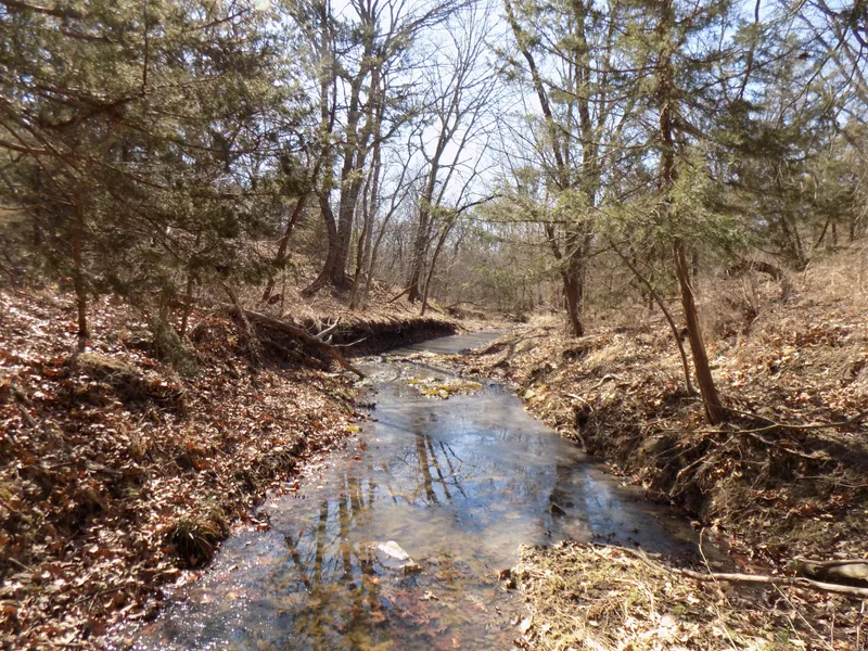 What an ideal 80 acre Recreational property. There is a large canyon with heavy mature tree cover and a creek running through the property. This is an excellent wildlife habitat area and a good hunting tract. Property has 8 acres of cropland and 10 acres of hay. hard-surface frontage and rural water line across the road. Taxes approx. $360