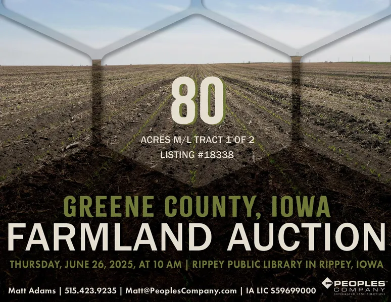 Research Parcel InformationFrom Rippey, Iowa: Head east on County Highway E57/290th Street for one mile. The farm will be on the right hand (south) side of the road. Look for Peoples Company signage.