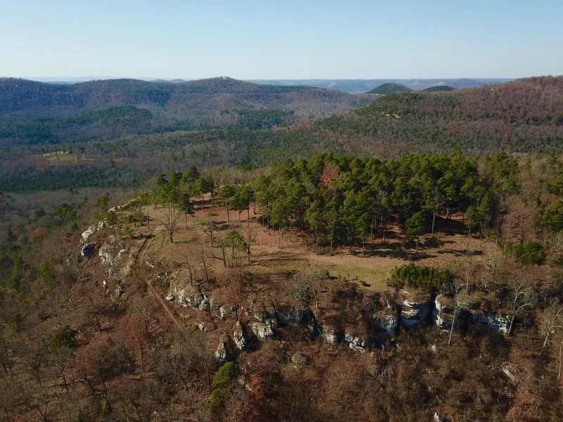 Grab your cup of coffee, kick back in your chair, and get ready to enjoy some of the best Ozark mountain top views you could imagine. This 80 +/- acre tract includes your very own mountain top oasis, with numerous build sites amongst the towering pines. Views from the mountain top can be seen stretching for miles in any direction that you look. Large rock bluffs surround the 950’ elevation on multiple sides along with huge rock formations below. A very well established and maintained road leads from the gated entrance off of Highway 9, all the way to the top of your mountain. Multiple internal trails will take you to different locations throughout the property with ample room for someone to expand on the established trails. There are several cleared areas that could be used for planting food plots to hunt over, as well as open hardwoods and dense cedar glades providing great habitat for wildlife. A small spring can be seen emerging from the ground just off the main road that the owner has never seen go dry. Multiple large and small seasonal creeks meander through the eastern half of the property. The recreational opportunities on this property and the surrounding area are endless. Hiking, hunting, horseback riding, ATV/UTV, mountain biking, fishing, and more are all on the property or minutes away. A short 20-25 minute drive will take you to either Melbourne, or Mountain View, where you can shop, eat, or enjoy many of the small town events that these beautiful Ozark mountain towns have to offer. If you would like more information on the property, or to schedule a tour, please contact Michael Rook with Midwest Land Group.