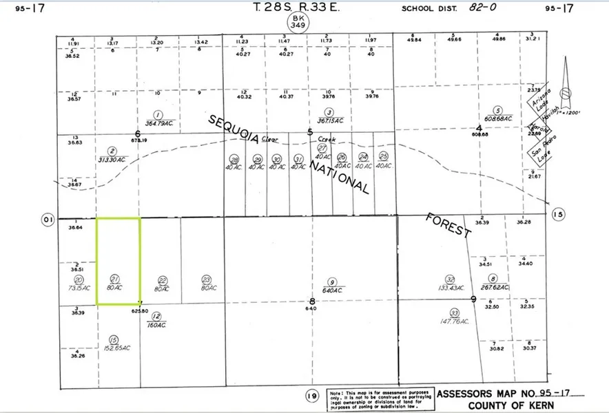 ***Come VIEW and MAKE an OFFER TODAY! Amazing ACREAGE OPPORTUNITY in KERN COUNTY CA. The 80 Acre parcel is located close to Clear Creek and Jenny Lind Canyon. The parcel is positioned in the RECREATION-FORESTRY (RF) DISTRICT zoning, designating lands for the conservation, use of natural resources, and for compatible recreational uses. With in this zoning the permitted uses include: residential uses, agricultural uses, recreation/entertainment/tourist facilities, utility/communications facilities, resource extraction/energy development uses, and institutional uses. See Kern County Zoning Ordinance for more details. In addition, the seller is willing to carry a note with very flexible terms: 25% down payment 3% interest amortization over 30 years due in 10, 33% down payment 2% interest amortization over 30 years due in 10, 50% down payment 1% interest amortization over 30 years due in 10. Plus, this seller has an additional 1100+ acres for sale in the surrounding area. These parcels can be purchase separately or as a bulk package. Offered at only pennies per square foot this is a must see land opportunity before it's too late. ***