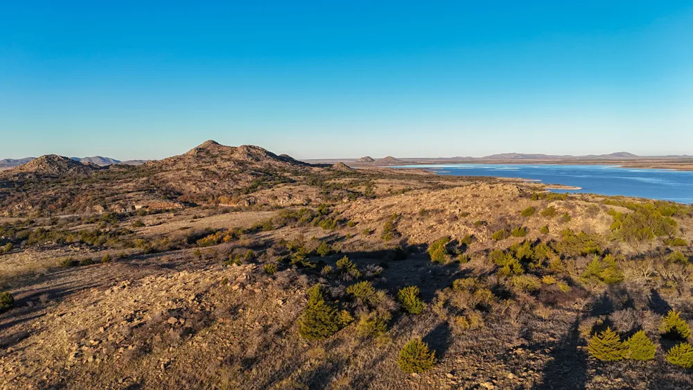 Graced by undulations of the Wichita Mountains and cross-sections of natural tree lines, this practically untouched 80 +/- acres sports some of the most pristine habitat for wildlife one can find. Two small ponds on both the east and west sides of the property add to an already abundant water supply made available by the nearby lake, perfect for holding wild game. In the fall, post oaks growing close by drop their mast of acorns, while the cultivation fields below to the south and east provide ample food for animals.