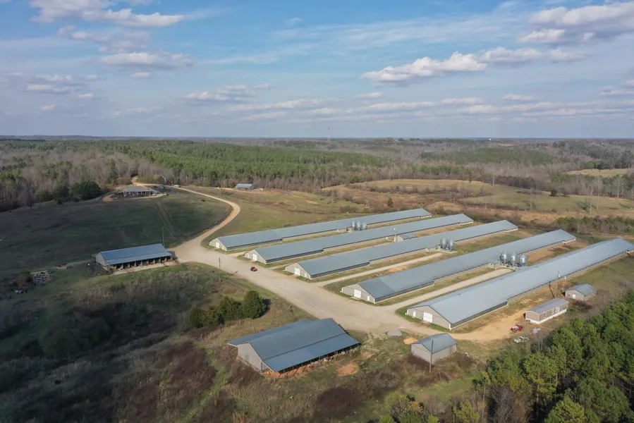 Asher Lane Broiler Farm 5 Super House in Hodges, AlabamaThe Asher Lane Broiler Farm is a 5 house farm located in Marion County near the town of Hodges. This farm has SUPER HOUSES that are 54600 with three being built in 2013 and two in 2016. The farm grows for MarJac Farms on a 35 day grow out for a 4 lb bird size. The farm has 80 +/- Acres, a Brick Home, Shop, Pasture, and very private setting. This farm has had an annual gross income of $400,000-425,000 over the past few years, this is poultry income only and does not include any livestock or litter income.Here are the features of the farm:Rotem Platinum Plus ControllersChoreTime Revolution Feeders with ChickmatesChoreTime Drinker Lines with PDSTunnel DoorsChoreTime Fiberglass fansRotem CommunicationsClimate Controlled Control RoomsCompost ShedTwo Litter ShedsParts and Well shedNatural GasCity Water and WellsThe home has two finished living areas. Upstairs there are three bedrooms and two bathrooms. Downstairs there are two bedrooms, one bath, kitchen, living room, dining area, and laundry. The home also has a one car garage. The farm is located down a well maintained gravel road with this farm sitting at the end of that road. There are fenced pastures on the farm and room to run several head of cattle or other livestock, this will generate additional income for the farm. An enclosed shop has storage and a place to work on equipment out of the weather. What a great combination of poultry, livestock, as well as a great home! The singlewide mobile home on the farm, will be removed and is not part of what will be conveyed at closing. Poultry farms are biosecure facilities. Absolutely no visits to the farm withoutan appointment. All potential purchasers must be prequalified with the PoultrySouth Team prior to scheduling a farm visit.