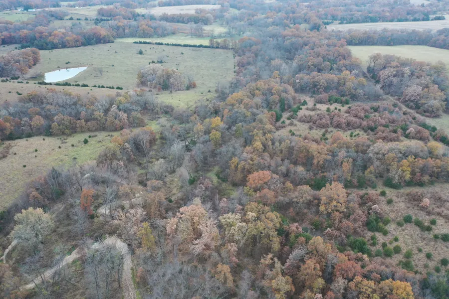 This 80 has so many things going for it I am not sure where to begin. First and foremost, if you are looking for a smaller hunting piece with good access then you just found it!! The thick brushy draws and travel ways make for great pinpoints for the bowhunter, and some knobs would be great for a box blind for the rifle hunter. There are plenty of Ideal locations for food plots with lots of row crop to the north and to the west. The meandering creek bottom provides a natural travel way for deer and a great place to roost the long beards, not to mention it looks like a GREAT place to grow huge Morel mushrooms. There is a nice pond nestled down in a valley that is hidden from view unless you are right on top of it, along with a lot of warm-season grasses that make for great bedding areas. This 80 has everything you need to grow and hold deer, turkey, and all kinds of wildlife. If you want a build site, utilities are available at the north road & a SUPER GOOD spot for a house/cabin offering a tremendous view of the property without hurting the hunting. It is gravel road frontage and only mile to blacktop Rt P.