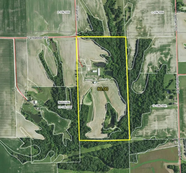 Endless possibilities exist for the acreage. Of the 80 acres, 33.41 are income-producing tillable acres with a Productivity Index Rating of 108.4. Tenancy is open for the 2020 cropping season. Two large freshwater ponds and approximately 25 acres of mature timberland are presented on the premises perfect dance partners for those seeking a recreational hideout. Neighboring wildlife habitat adjoins the property on all sides, making its hunting potential substantial.