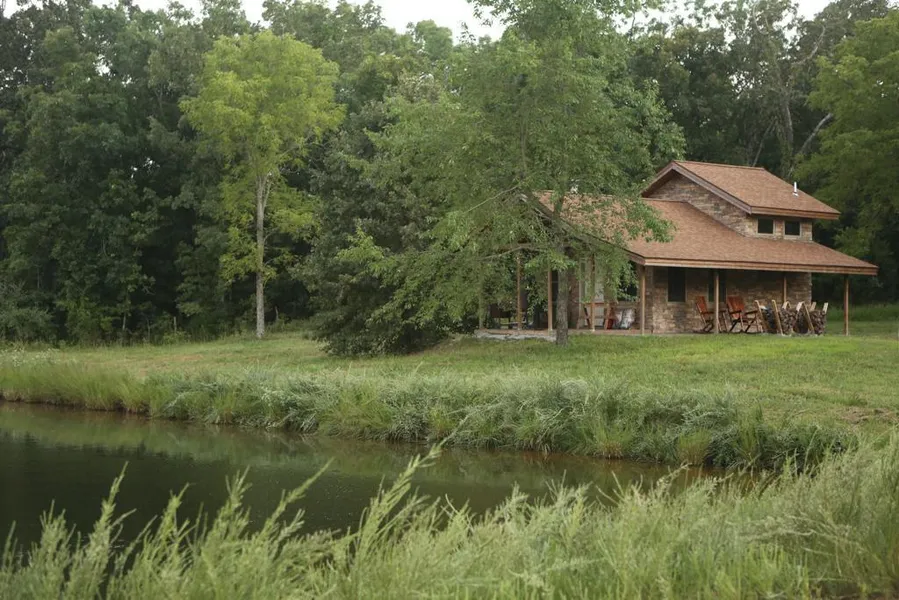 This 80 +/- acres sits 7 miles south of Joplin in the middle of the section and is very secluded. Just east of 86 highway on Holly road gives you blacktop to the gate and quick access away from the hustle and bustle of town. Perfect for a secret hunting spot, quiet retreat, or a potential build site. The newly constructed 1 bedroom, 1 bath cabin is roughly 550 square feet that has a spacious loft and a wood burning stove. It also has a covered porch on two sides of the cabin overlooking the .3 acre pond that is full of bass, the fire pit, and the big oak covered valley that runs through the property. The east half of the property is very thick timber and creates incredible cover for deer and wildlife. Most of the west half is covered in very large mature trees, a few fruit trees, with good grass, and browse throughout.