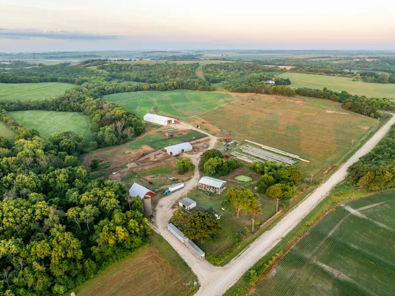 Outside the 3-car detached garage is 30’ x 25’ and is steel framed with full concrete and sits just steps to the south of the residence. The yard space is perfect with one of the most beautiful Burr Oaks providing endless shade. Even the old stone wall stands strong along the front. To the south is the original 1910 red barn, 58’ x 48’, and it too has so many incredible details of the farm life that once was, from the rock wall to the hay and door track in the loft. The turnout pen to the south connects and runs through to the additional pens and working area. The 50’ x 52’ livestock barn has a squeeze chute and currently provides a covered area to work cattle and equipment storage. There are 3 auto waterers throughout the corral and pen area. The 60’ x 40’ shop to the north is ready for sidewall and is steel framed with 5 concrete floors throughout and is stubbed for plumbing. Continue to the south and find the newly built 150’ x 60’ hay barn that is post-framed with a dirt floor throughout. This barn could be utilized in many fashions, from hay storage to dry storage space and more. To the west is a fenced grazing area with an auto waterer and a separate north gate entrance.