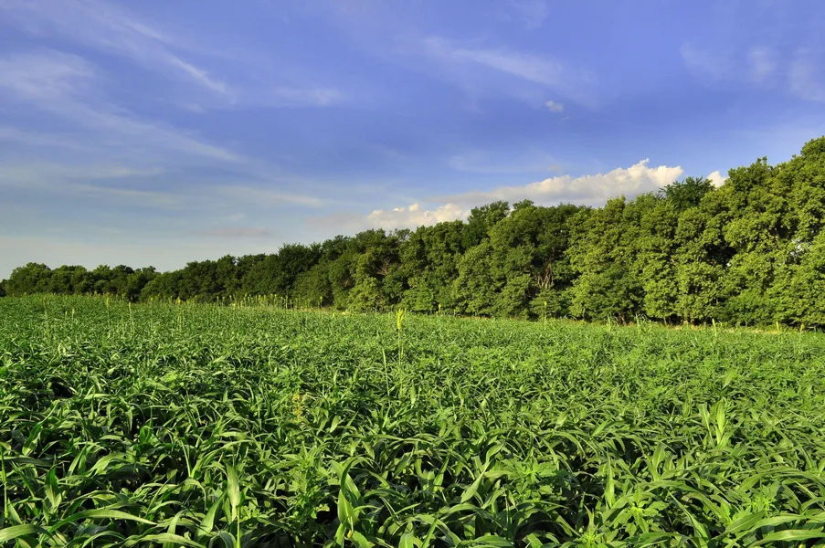- Area on east side of cropland features tall mature cottonwoods and 10 ft tall grass which serves as an incredible bedding area for deer