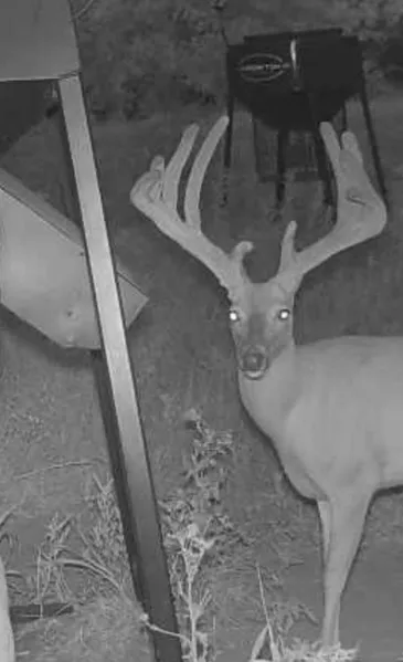 If you enter the 2nd gate in about the center of the farm on the east side it will lead you into a little hole the seller created by clearing some brush in the middle of some thick bedding area. This spot has a small 1/4 acre plot, a 400 pound gravity feeder and 2 20 ft ladder stands. This is another of the big buck killing holes.