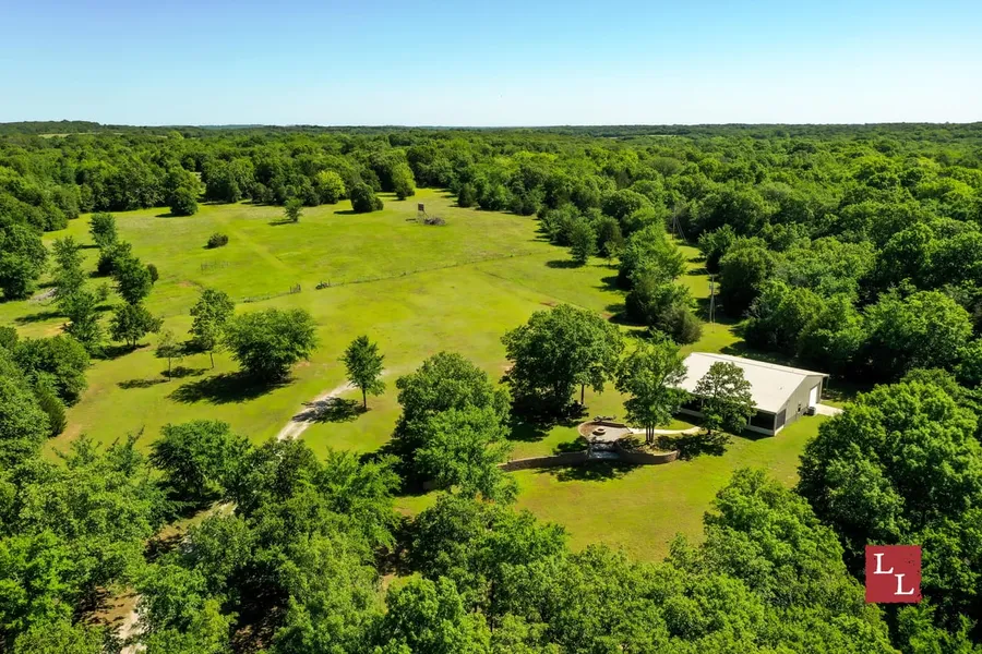 The centerpiece of the property is the house. This 40'x50' barndominium has a simple yet elegant design that combines beauty with functionality. The kitchen has gorgeous granite countertops that are complemented by stainless appliances. Gracing the kitchen, living room, and hallways is a lovely wood-look tile that accents the cabinetry and trim work nicely. The home features three bedrooms and two bathrooms. All of the basic furnishings that one could need for an escape to the woods are included in the sale. On the west side of the cabin is a 10x50 screened in porch that offers excellent views of the ponds and surrounding fields. The home is located out of sight from the county road at the end of a meandering ranch road. This cozy living space could be a great escape from the city or a perfect home in the country for someone looking for a peaceful getaway. Just imagine peaceful nights next to the fire pit looking up at the stars unobstructed by the light pollution of the city!
