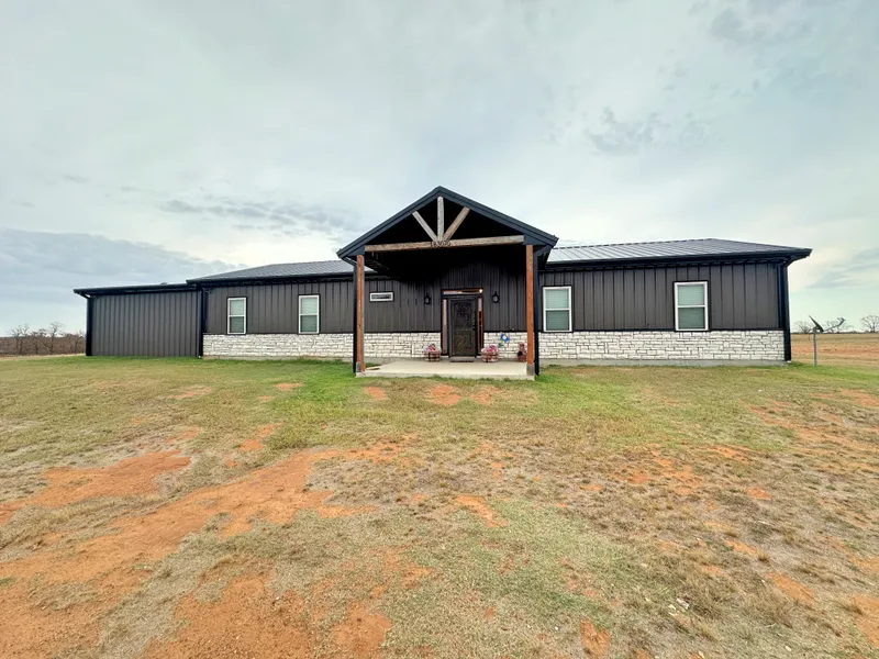 Experience the perfect blend of modern comfort and rural freedom on this exceptional 80-acre property located conveniently off a paved road with dual entrances. This striking all-black barndominium offers style, functionality, and privacy, making it an ideal home for anyone seeking space and serenity. Enjoy your mornings with coffee in one hand and breathtaking views from the covered back porch to get the day started right!