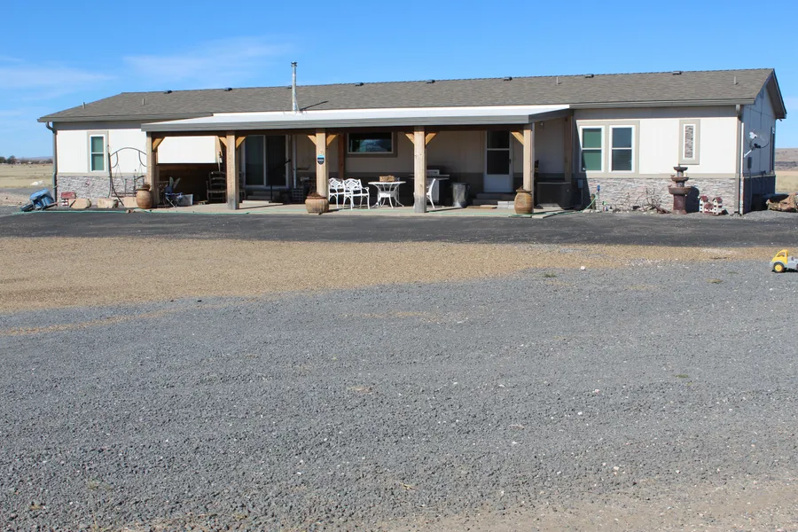 This property encompasses 80 acres+/- providing space for various uses of the grassland and potential developments. The beautiful manufactured home that is approximately 10 years old has 3 bedrooms, an office and 2.5 baths providing ample living space (approximately 2,184 SqFt). A large front porch facing the south offers a relaxing space with scenic views. The home is all electric and includes a generator providing power during electrical outages adding a practical and convenient feature. There are two newer metal shops/garages on the property. The first building is 40'x60' and the second is 40'x40'. Both structures have concrete floors, adding durability and functionality. Each building has two electrical garage doors with remote openers providing ease of access and security. The property is connected with the town of Clayton, NM for its water supply, offering convenience and reliability. The property has its own septic system, ensuring self-sufficiency in waste management. The rarity of such property on the market adds to its appeal, making it a unique and sought-after opportunity for potential buyers. A blend of modern living, functionality, and ample space, makes this property an attractive prospect for those in search of a well-equipped and picturesque property.